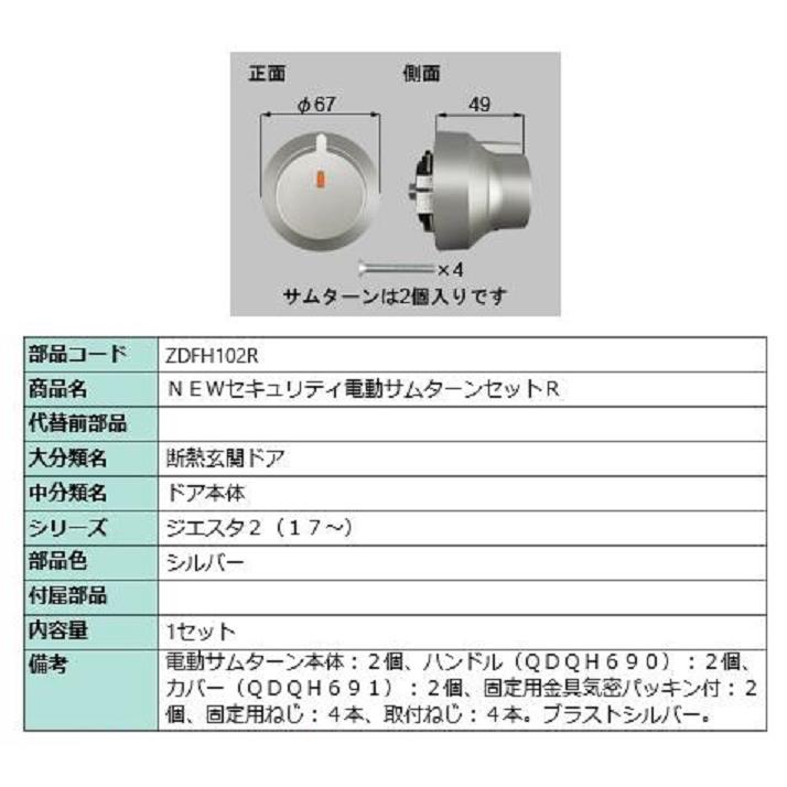 | 商品の特徴 | セキュリティ電動サムターンセット・R / 1セット 部品色:シルバー。zdfl102r.jpg。トステム セキュリティ電動サムターンセット ZDF*102【TOSTEM LIXIL。⭕️夏の期間限定値下げ⭕️2025-07-07〜LIXIL トステム 電動サムターンセット シルバー ZDFH-102R☆即日発送可能!!販売実績多数で安心してお取引して頂けると思います♪- 部品: 電動サムターンセット 玄関ドア 防犯ロック- ブランド: LIXIL リクシル TOSTEM トステム※これ以上の値下げ不可 ×※数回使用※状態はとてもいいです!1度人の手に渡ったものになります細かな傷などはご了承ください商品は写真にて、ご確認ください。即日発送可能そのため商品到着後確認次第、お早めに到着通知(受け取り評価)して下さると嬉しいです。即購入大歓迎!当日即発送出来ます☆※他サイトにて出品中のため早い者勝ちです!※★★★★★★★★★★★★★★★高額商品の為、最近流行りの詐欺行為が流行っておりますが、許せませんし、そんな方とは絶対にお取引したくありません。ご購入後の理不尽なキャンセルには断じて応じませんので他をお当たりください。( * ꒳ *)★★★★★★★★★★★★★★★。LIXIL 電動サムターンR マットブラック ZDFL-102R 即日発送 LIXIL。★質問はコメントにて受け付けております(*ᴗˬᴗ)梱包は、できるだけ丁寧に致します。新品未使用 日本イトミック壁掛型電気温水器 EWM-14N(iHOT14)。その他 AS。☆スムーズで気持ちの良いお取引出来る方これ以上のお値引不可。温水暖房付ふろ給湯器 GTH-C2460AW-1。【新品未使用】三つ編みパワーコード 1500W対応。そのため発送の際の梱包〜発送の動画撮影や証拠は撮っております。ASAHI P TAPE & テープ式屋内外端末セット。【卓上】【業務用】脱気シーラー 真空パック機 富士インパルス。安心してお取引頂ける方のみでお願いいたします。水素エアージェネレーターフレアー | ||